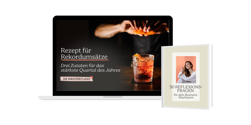 Alle live Teilnehmer*innen bekommen ein Workbook mit 50 Reflexionsfragen. Damit kannst du direkt prüfen, wo du gerade stehst, welche Stellschrauben du noch drehen solltest – und welche Entscheidungen dir sofort Umsatzhebel für die letzten Monate bringen.
